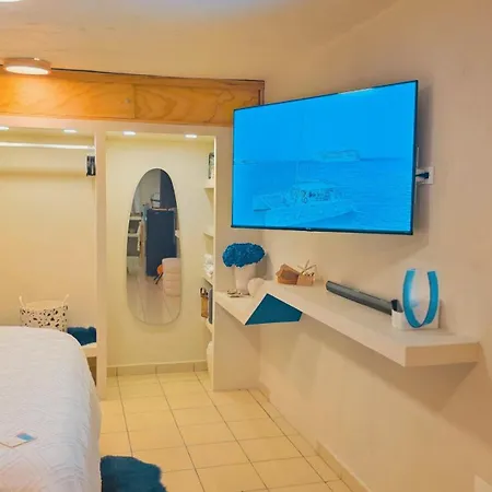 Il Santorini Suites Cozumel offre un salottino arredato con un divano e una scrivania, oltre a comfort moderni come una TV a schermo piatto con canali satellitari. La struttura vanta 1 camera da letto con cuscini in piuma. L'alloggio dispone di 1 bagno che offre un bagno alla francese e una doccia. Troverete anche asciugacapelli, cuffie per la doccia e teli da bagno.